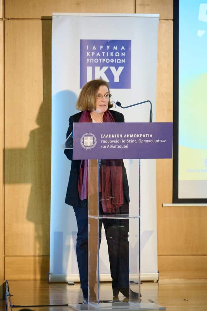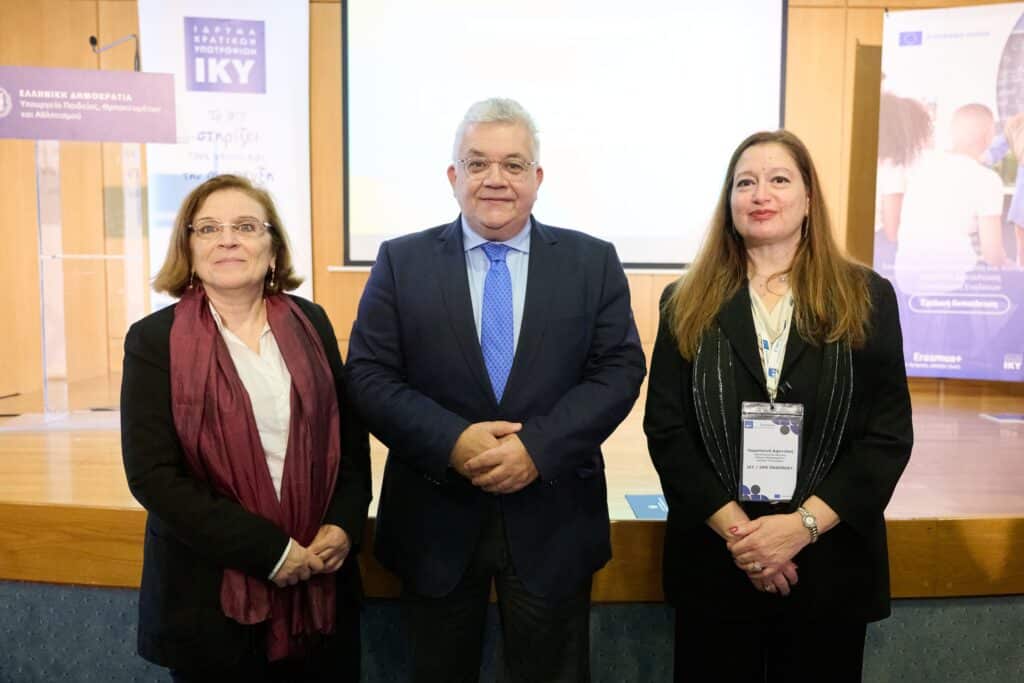 Η Πρόεδρος του Δ.Σ. του ΙΚΥ κ. Βάσω Κιντή αναφέρθηκε στον ρόλο του ΙΚΥ ως Εθνικής Μονάδας Συντονισμού του προγράμματος Erasmus+ για την Εκπαίδευση και την Κατάρτιση, τονίζοντας ότι η συμμετοχή των σχολείων στο Πρόγραμμα ενισχύει την ευρωπαϊκή διάσταση της ελληνικής εκπαίδευσης, προάγει την ανταλλαγή καλών πρακτικών και συμβάλλει στη βελτίωση της εκπαιδευτικής διαδικασίας. Παράλληλα, ανέδειξε τη σημασία των διεθνών συνεργασιών και των ευκαιριών κινητικότητας για τους μαθητές, οι οποίες ενισχύουν την αυτοπεποίθησή τους και τη συμμετοχή τους στα κοινά ως ενεργοί Ευρωπαίοι πολίτες.