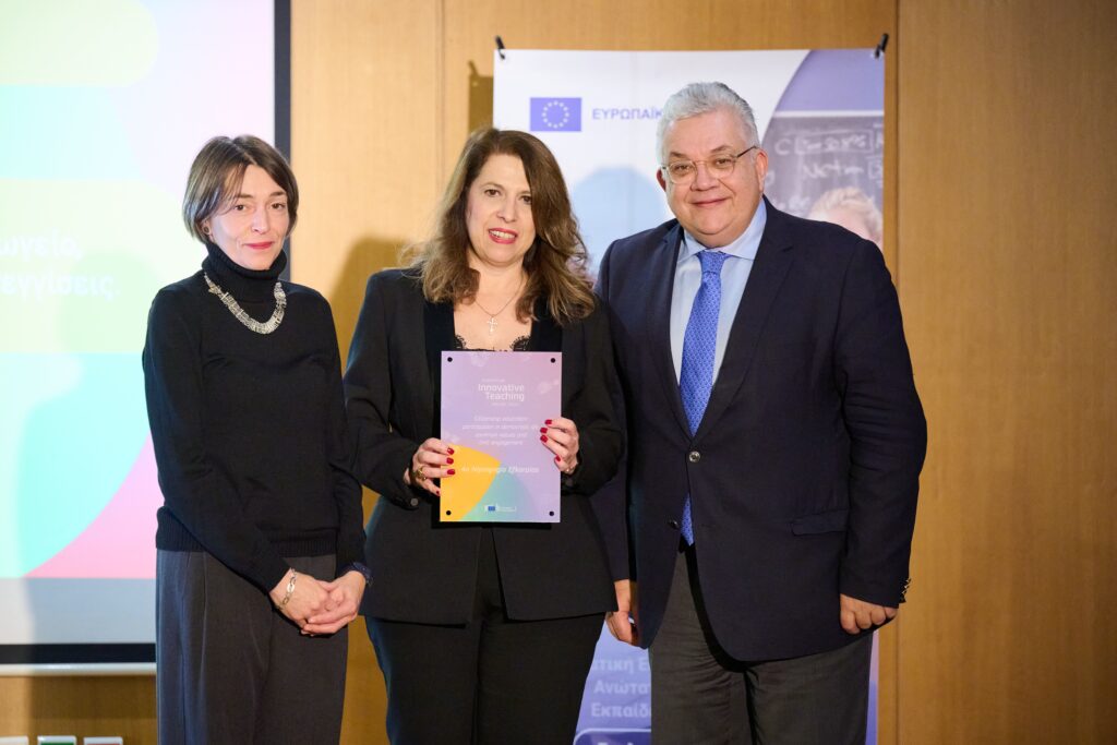 Σε ιδιαίτερα ζεστή και εορταστική ατμόσφαιρα πραγματοποιήθηκε εκδήλωση του Ιδρύματος Κρατικών Υποτροφιών (ΙΚΥ) για το Ευρωπαϊκό Βραβείο Καινοτόμου Διδασκαλίας (EITA) 2025 και το Ευρωπαϊκό Σήμα Γλωσσών (ELL), την Παρασκευή 12 Δεκεμβρίου 2025, στην αίθουσα «Γαλάτεια Σαράντη» του Υπουργείου Παιδείας, Θρησκευμάτων και Αθλητισμού.
