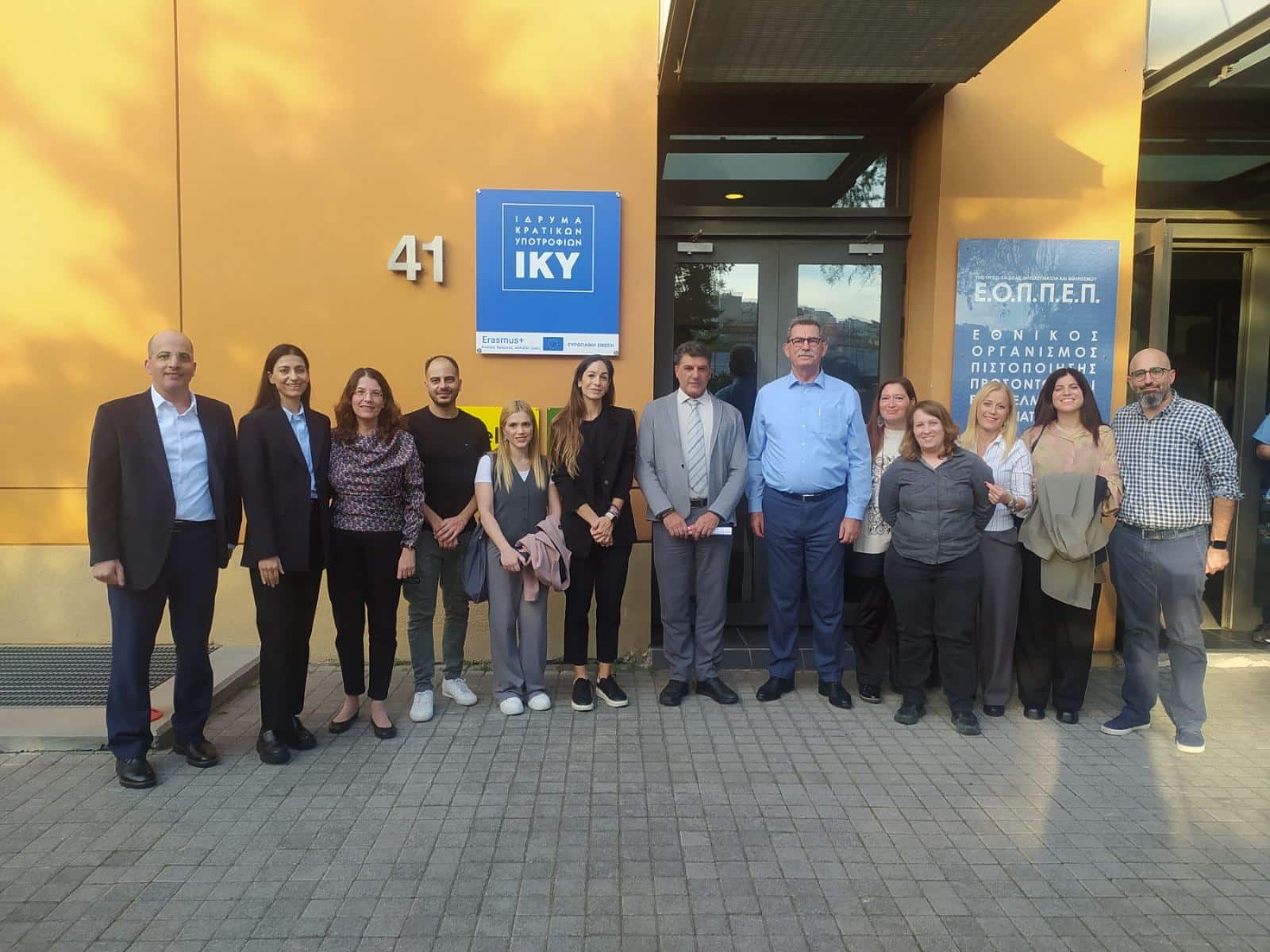 Συνάντηση εργασίας στελεχών του ΙΚΥ και του ΙΔΕΠ πραγματοποιήθηκε, την Πέμπτη 30 Οκτωβρίου 2025, στα γραφεία του Ιδρύματος Κρατικών Υποτροφιών (ΙΚΥ) στην Αθήνα. Η Πρόεδρος του Δ.Σ του ΙΚΥ, κ. Βασιλική Κιντή υποδέχτηκε τον Προέδρο του Δ.Σ. του Ιδρύματος Διαχείρισης Ευρωπαϊκών Προγραμμάτων (ΙΔΕΠ) Διά Βίου Μάθησης, καθηγητή κ. Πέτρο Πασιαρδή, τον Διευθυντή του Ιδρύματος, Δρ. Στυλιανό Μαυρομούστακο, καθώς και στελέχη του ΙΔΕΠ. Εκ μέρους του ΙΚΥ συμμετείχαν, ο Γενικός Διευθυντής, κ. Άγγελος Γιουβρέκας, η Προϊσταμένη της Διεύθυνσης Ειδικών Προγραμμάτων Διεθνών Υποτροφιών, κ. Παρασκευή Αφεντάκη, και στελέχη του ΙΚΥ.