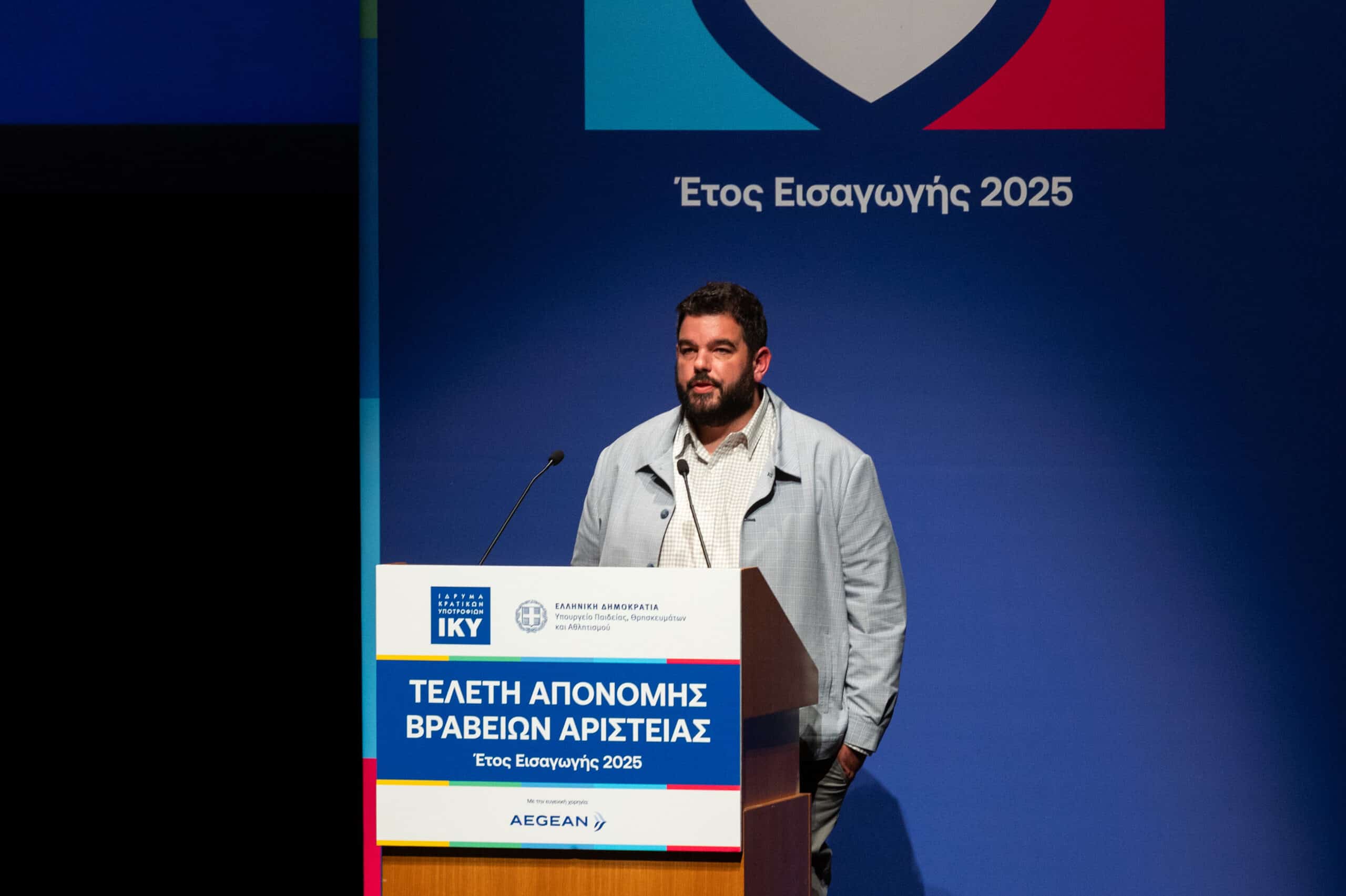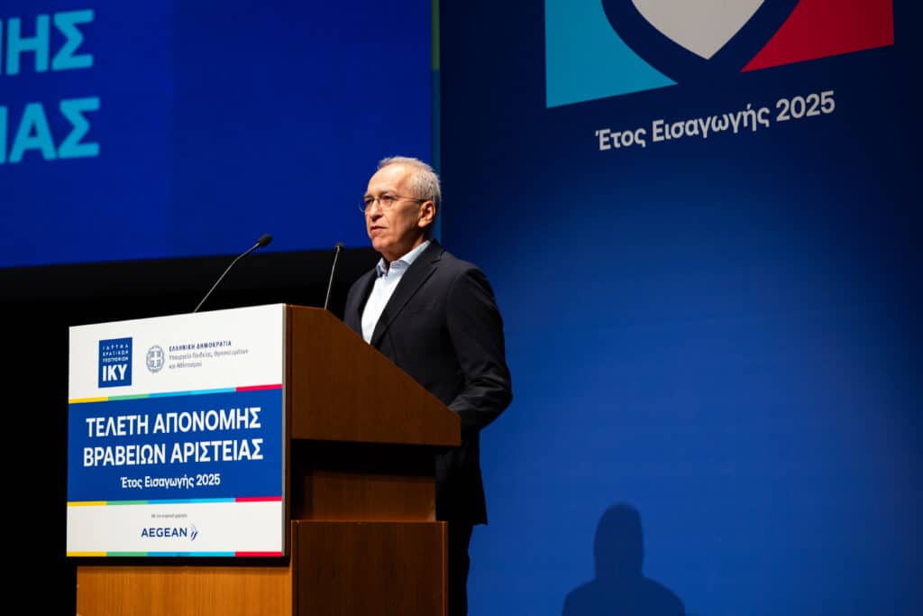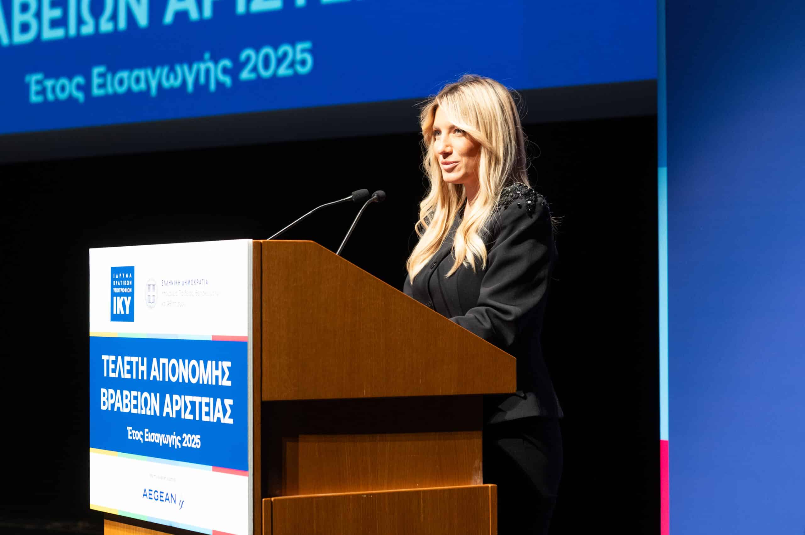 Με την υποστήριξη του Υπουργείου Παιδείας, Θρησκευμάτων και Αθλητισμού, το Ίδρυμα Κρατικών Υποτροφιών (ΙΚΥ), πραγματοποίησε την Δευτέρα 19 Ιανουαρίου 2026, στην αίθουσα «Αλεξάνδρα Τριάντη» του Μεγάρου Μουσικής Αθηνών, την επίσημη τελετή απονομής των Βραβείων Αριστείας στους/στις πρωτεύσαντες/σες εισαχθέντες/είσες όλων των Σχολών και Τμημάτων των Ιδρυμάτων Τριτοβάθμιας Εκπαίδευσης της χώρας. Τα βραβεία απένειμε η Υπουργός Παιδείας, Θρησκευμάτων και Αθλητισμού, Σοφία Ζαχαράκη.