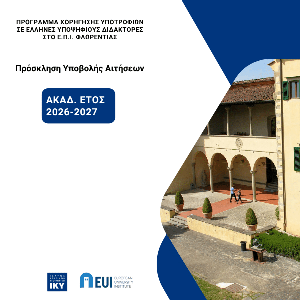 Το πρόγραμμα απευθύνεται σε Έλληνες, κατόχους τίτλου σπουδών επιπέδου Μάστερ ή ισοδύναμου, για την πραγματοποίηση σπουδών διδακτορικού επιπέδου στο Ε.Π.Ι. Φλωρεντίας, στους τομείς: Ιστορία και Πολιτισμός, Κοινωνικές και Πολιτικές Επιστήμες, Νομικές Επιστήμες, Οικονομικές Επιστήμες.